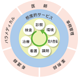 患者様が受ける医療サービスを来院から退院までの過程を表したサイクルが「医療サービスサイクル」です。(弊社提供) |