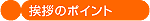 (例:「おはようございます」 「いらっしゃいませ」 「お疲れ様でした」)