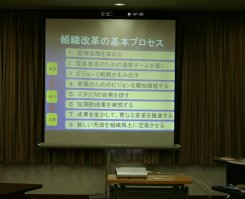 講義は、ファシリテーションスキルということから始まりました。ファシリテーションとは、中立的な立場でプロセスを管理することで、中心になる人をファシリテーターと呼びます。院内で行われている会議が有効に且つ建設的に行われているか? 特に病院で必要とされている委員会や会議は、病院機能評価で決められているもので、200以上あると聞いてびっくり!! |