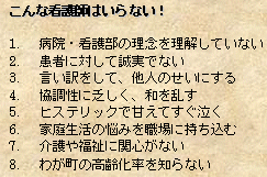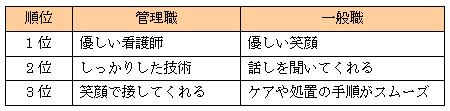 さて、次の問いは、「どのような看護師を患者さんは望んでいると思いますか?」という問です。やはり、8項目合計128通り提出されました。全員が8通りの意見を発表した後、多い方から3番目までをまとめてみました。