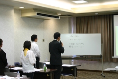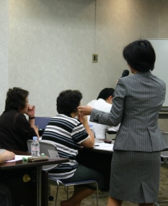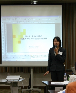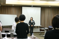 講座の内容は、最初接遇の研修を病院内で実施する場合のカリキュラム内容についてと進め方のポイント、後半は実際の接遇について実習を行ないました。接遇のカリキュラムについては、身だしなみから挨拶・敬語・案内の方法・クレーム対応・電子メールなどビジネスに必要な基本的な項目から、病院内で特に重要な項目を重点的に企画すると、スムーズな研修を行なうことができるのではないかというアドバイスがありました。 |
