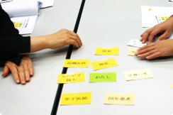 後半は各テーブルに分かれてグループワークを実施。どのグループも熱心にディスカッションが行われていました。 |